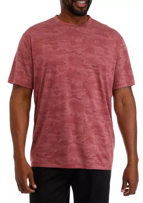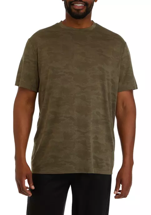 Take on any workout in the cool, casual comfort of this camo jacquard t-shirt from ZELOS.