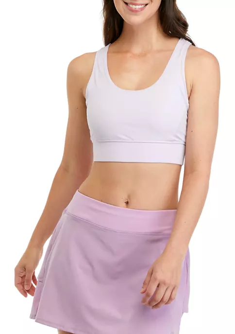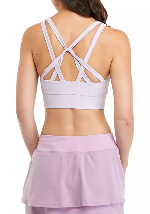 Designed with a strappy back, this longline sports bra from ZELOS offers comfort and support for your workouts.
