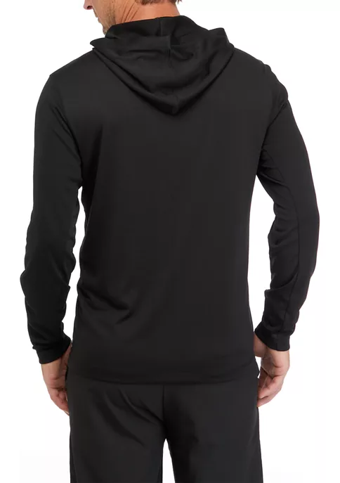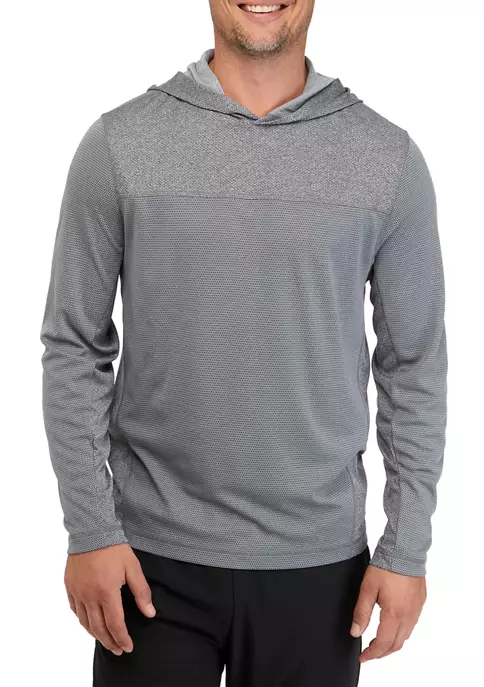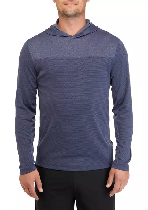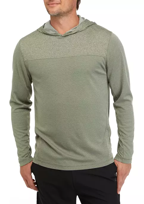 Subtly textured and fashioned in a stretchy blend of materials, this long sleeve hoodie from ZELOS is easy to wear on chilly days.